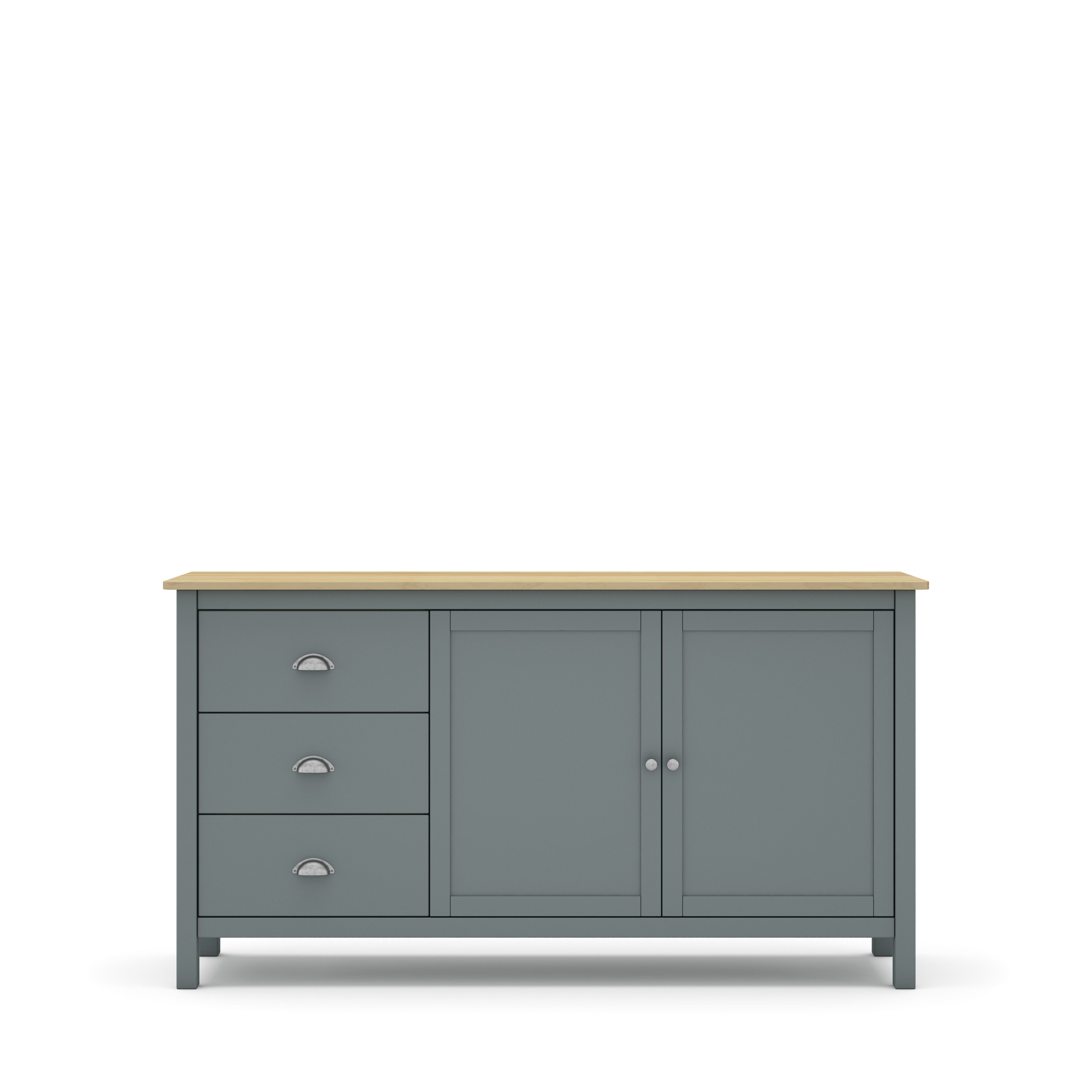 Aparador 2 puertas y 3 cajones acabado verde kaki y roble. Largo 150 x fondo 40cm x altura 80,5cm. Se sirve desmontado