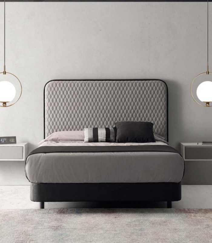 Cabecero tapizado ancho 160 x alto 140 x fondo 11cm. Bordado pequeños rombos y esquinas redondeadas. Tapizado según imagen.